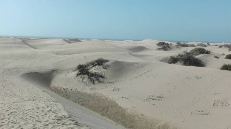 Waan je in een echte woestijn bij een wandeling in de Dunas De Maspalomas. Ben je gewend om goed te stappen of een ervaren hiker kun je de woestijn doorkruisen van Maspalomas naar Playa Del Inglés. Neem dan zeker voldoende water mee want het kan echt wel heet worden in de duinen en deze tocht is zeker niet te onderschatten. De kustlijn aflopen is veel makkelijker omdat het zand daar aangehard is.