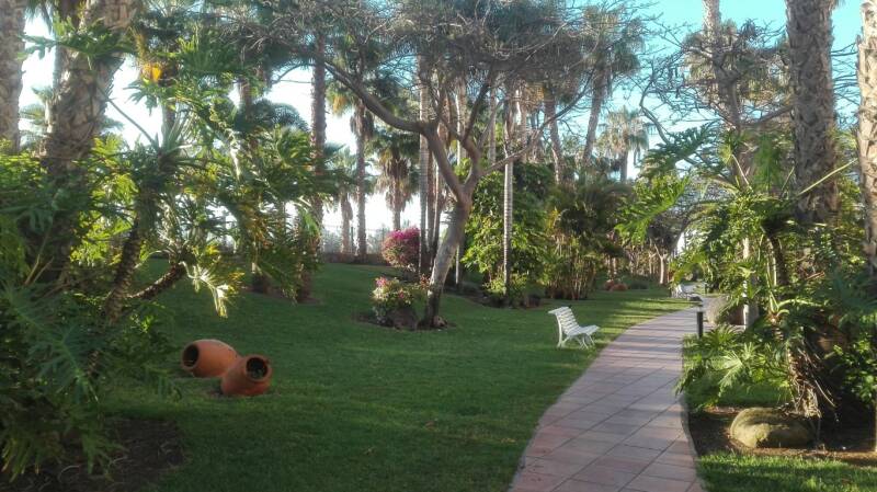 Het hotel Maspalomas Princess kunnen we maar omschrijven in één woord "Schitterend". Mooie tropische gewassen, hoge palmbomen, grote zwembaden en genoeg stoelen voor de zonnekloppers.