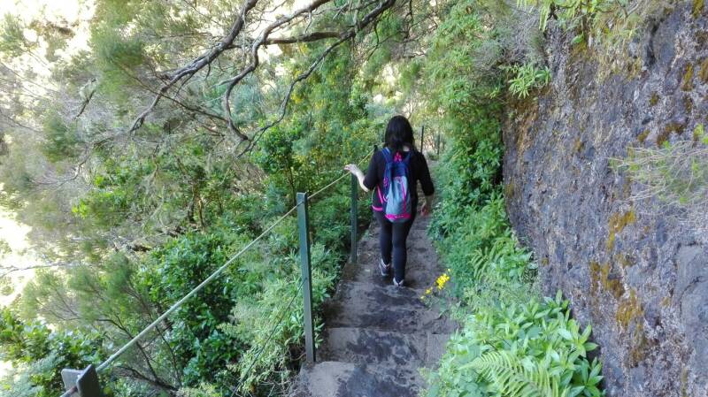 We kregen niet genoeg van de mooie natuur van Madeira en daarom hadden we beslist om nog een fantastische hike te doen. Deze keer trokken we naar de Levadas Das 25 Fontes en de 100 meter hoge Risco Waterval. Dit is een van de mooiste wandelingen die er in Madeira te doen zijn. De afstand voor beide wandelingen valt best wel mee. Deze zijn slechts een paar kilometers samen. Eigenlijk zijn het 2 afzonderlijke wandelingen maar omdat de eerste helft van het parcours hetzelfde en en de wandeling dan opsplitst raden we iedereen aan om ze te combineren. Deze zijn zeker en vast goed te doen. Je kan parkeren bij de parking van het uitzichtpunt Miradouro do Rabaçal. Daarna zijn er 2 opties. Ofwel wandel je te voet een paar kilometers naar het startpunt (de moeite waard en zeker te doen want alles is bergaf) ofwel opteer je voor de shuttlebus die je voor een paar euro's heen en terug brengt vanop de parking. Omwille van het mooie uitzicht kozen wij er voor om de afdaling naar de start van de wandeling; die bij het restaurant begint; te voet te doen. Houdt tijdens de wandeling rekening met smalle passages en soms wel hier en daar een afgrond aan één kant. Je komt hier geregeld wel andere bezoekers tegen en dan moet je namelijk ook elkaar voorzichtig kruisen. Omdat deze wandeling in het teken staat van de Levada's (irrigatiekanalen in de bergen met water) kan het wel eens spekglad zijn. Goede wandelschoenen is een must en voor kleine kinderen en zelfs volwassenen is voorzichtigheid geboden.