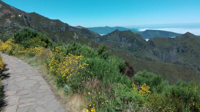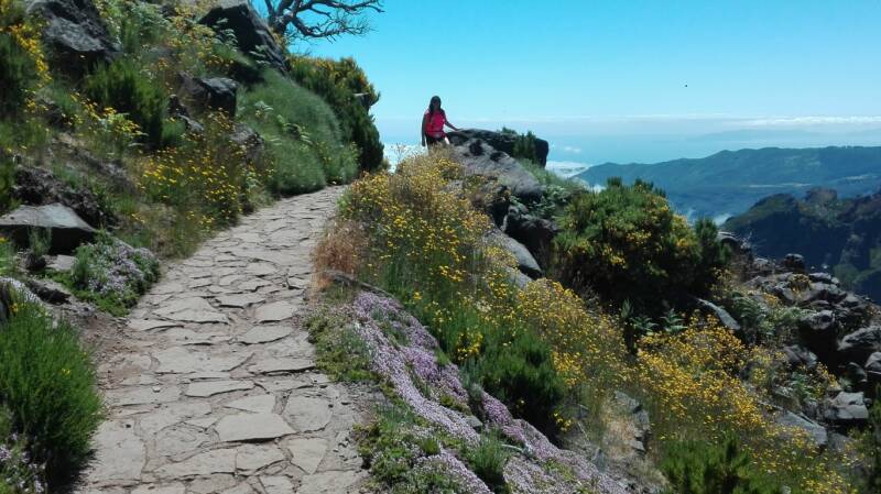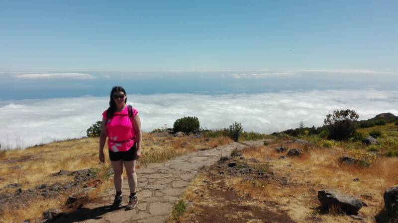 Wat zeker ook als nr.1 op onze planning stond was de waldeling naar de hoogste top van het eiland genaamd de Pico Ruivo. Daar je er niet rechtstreeks met de auto kon geraken hadden we ervoor gekozen te parkeren bij de parking van Achada Do Teixeira. Dit is een adembenemende wandeling van 2,8 km en dezelfde afstand terug retour. Goede wandelschoenen zijn vereist. Er zijn onderweg ook wat trappen te maken om de top te bereiken. Ervaren wandelaars kunnen ook beginnen bij een andere berg, genaamd de Pico Ariero. Voor deze tocht van 14 km (7 km enkel) heb je wel een zaklamp nodig omdat je dan door enkele tunnels moet wandelen. Ook voor de door ons gekozen wandeling zijn goed wandelschoenen een must. Welke wandeling je ook kiest, neem voldoende drinken mee en een hapje voor onderweg. Een trui is geen overbodige luxe door het microklimaat dat er zicht daar bevindt. Het kan op die hoogtes namelijk gevoelig frisser zijn al hebben wij dit niet kunnen ervaren.